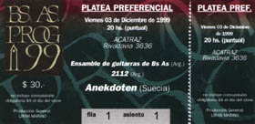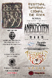 The Rock Progressive & simphonic international festival "BUENOS AIRES PROG. 99", was the first festival in your type make in Argentina, with six prestigious bands, playing in the days, friday 3 and saturday 4, December 1999, Buenos Aires, Argentina.